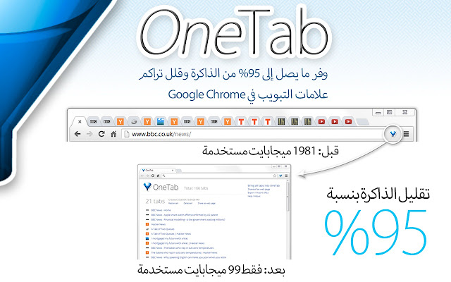 إذا كنت مما يفتحون اكثر من 10 صفحات على جوجل كروم هذا بالطبع يستهلك كثيراً من موارد الكمبيوتر الخاص بك مثل الرامات و المعالج و غيره هذه الاضافة توفر الرامات بشكل كبير آلية عملها بسيطة وهي عند تثبيت الاضافة و عند الضغط عليها سوف يتم غلق كافة الصفحات و حفظها داخل الاضافة و الرجوع اليها مرة اخرى عند الحاجة .